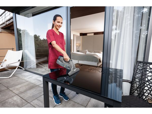 Ob Sie unseren handgehaltenen Nasssauger WVP 10 Adv nun als Fenstersauger verwenden, Fliesen, Spiegel, Vitrinen, Theken oder jede andere glatte Oberfläche damit reinigen, ist nicht entscheidend. Entscheidend ist, dass Sie in jeder Lage, wenn nötig sogar über Kopf, streifenfreie Reinigungsergebnisse erzielen werden. Dafür sorgt unter anderem der schnelldrehende Motor, der über eine deutlich höhere Absaugleistung verfügt als bei herkömmlichen Haushaltssaugern üblich. Das akkubetriebene, leichte und robuste Gerät überzeugt darüber hinaus mit durchdachten Details, wie beispielsweise dem 200-Milliliter-Schmutzwassertank, der simpel und schnell zu entleeren ist und bei Bedarf einfach in der Spülmaschine gereinigt werden kann. Oder auch mit dem manuell einstellbaren Abstandhalter für perfekte Ergebnisse bis an die Kanten. Bei der Version WVP 10 Adv erhalten Sie einen zusätzlichen Wechselakku, ein Schnellladegerät, Reinigungsmittel sowie eine Sprühflasche mit 2 Wischbezügen. Damit ermöglicht der WVP 10 Adv nahezu unterbrechungsfreies Arbeiten.