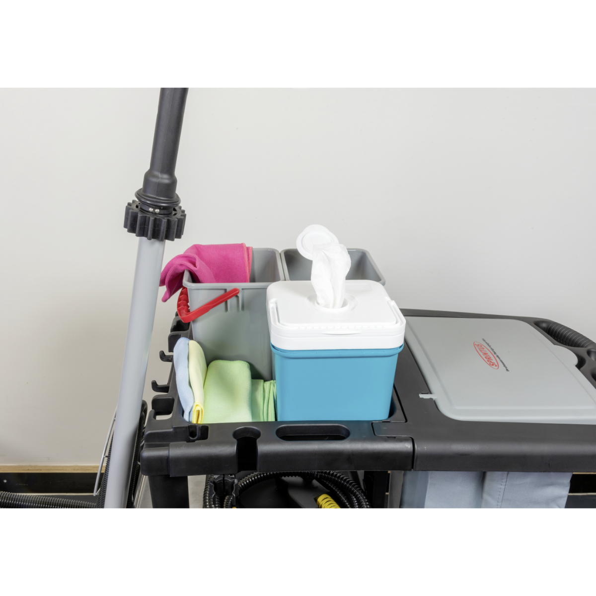 Alles dabei - alles an seinem Platz. Effiziente Reinigung ist nicht nur eine Frage des richtigen Equipments, sondern vor allem auch der optimalen Organisation. Dafür steht unser Hygiene Trolley.